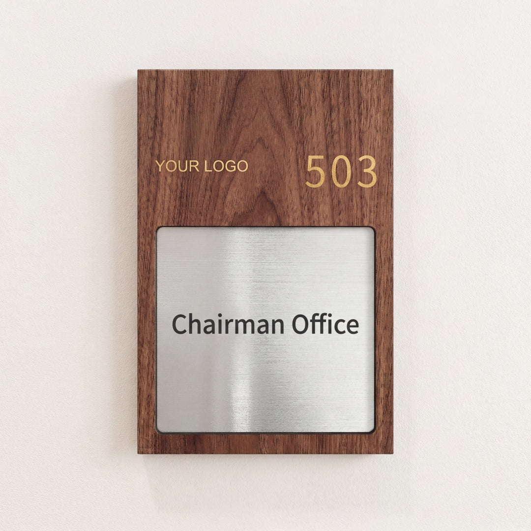 Wood Grain Frame Acrylic Office Signs | Custom Door Plates for Executive Offices